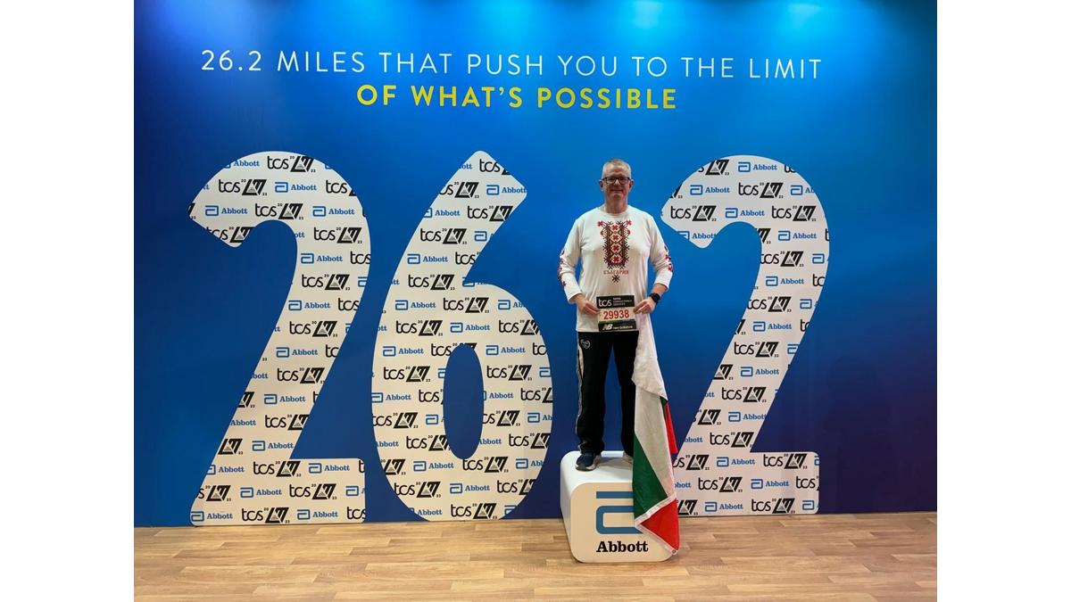 I am very pleased to confirm that I successfully completed the 42km course of the London Marathon on Sunday April 21st. I was one of 21 Bulgarians who gained entry to the race this year, and as you can see from the images in this email, I proudly wore the Bulgarian colours and crossed the finish line in front of Buckingham Palace with the national flag raised above my head!