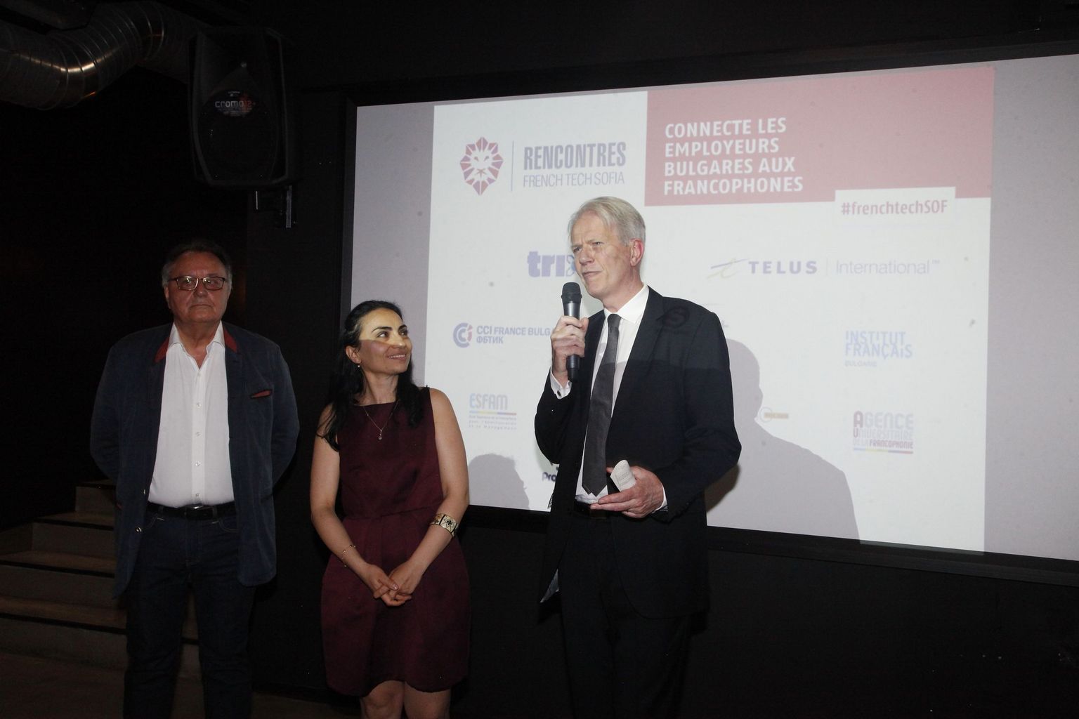 Animée par la Directrice de la CCIFB, Mme Vessela Todorova-Mosettig, la soirée a été inaugurée par les invités d’honneur : l’Ambassadeur de France, Son Excellence Monsieur Eric Lebédel, Monsieur Latchezar Borissov, vice-ministre de l’économie, les PDG de Telus International Monsieur Philippe Ougrinov et le PDG d’Advent Group Monsieur Christophe Coutat, le Président d’honneur de la CCIFB, Monsieur Patrick Favre et Adrien Bacchi, PDG de Trixir. Saluant l’initiative de ces rencontres professionnelles tous ont fait un point sur le développement du secteur IT et l’externalisation entre les entreprises françaises et bulgares, mais également au niveau international, ainsi que la possibilité de poursuivre une carrière internationale au sein de Telus et Advent Group.