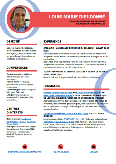 A la recherche d'un stage en relations internationales: Louis-Marie Dieudonné