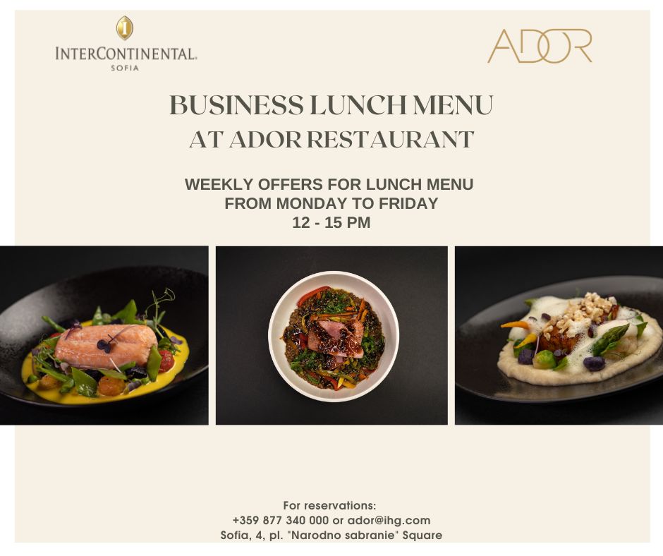 At the beginning of the year, ADOR restaurant at InterContinental Sofia renews its weekly lunch offers.