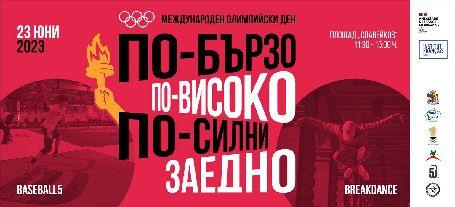 L’Institut français de Bulgarie se joint au Comité National Olympique, à la Fondation Sofia capitale européenne du sport, à l’Académie nationale des sports et à l’Académie olympique nationale de Bulgarie pour organiser la Journée internationale Olympique qui se tiendra le 23 juin de 11h30 à 15h00, place Slaveykov.