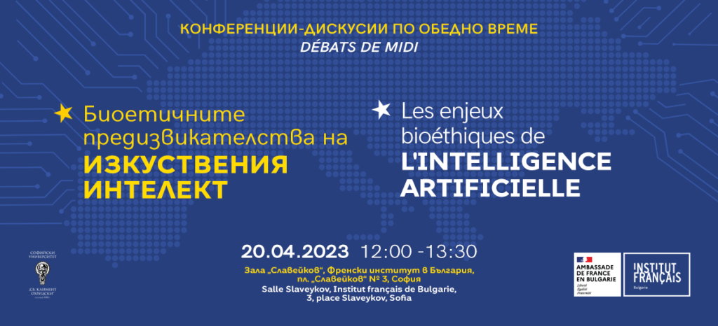 Dans le cadre de la série des « débats de midi », l’Institut français de Bulgarie en partenariat avec l’Université de Sofia Saint-Clément d’Ohrid présente un débat européen sur le thème des « Enjeux bioéthiques de l’intelligence artificielle ».