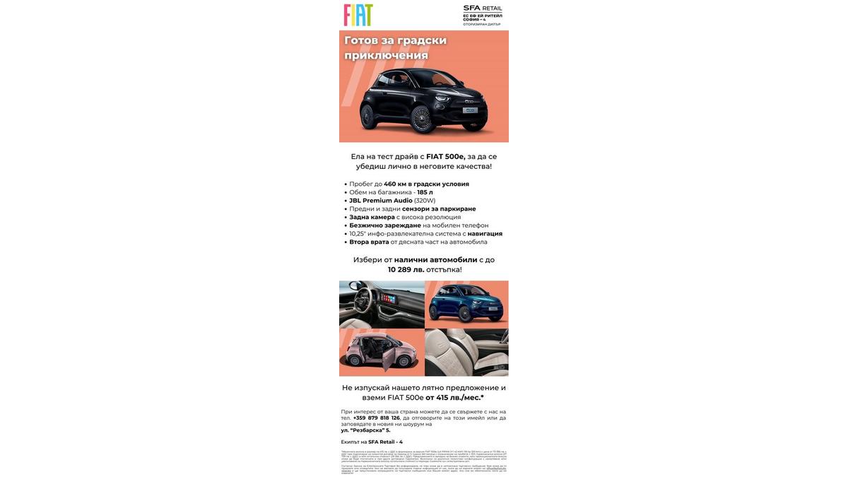 Fiat 500e със специални летни предложения