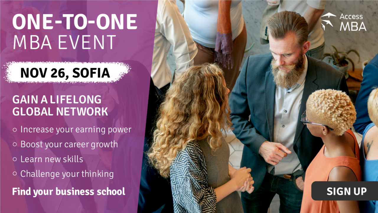 FOCUS ON LEADERSHIP, TAKE THE MBA WAY, AND MEET YOUR DREAM UNIVERSITIES AT THE FREE ACCESS MBA IN-PERSON EVENT IN SOFIA ON NOVEMBER 26TH