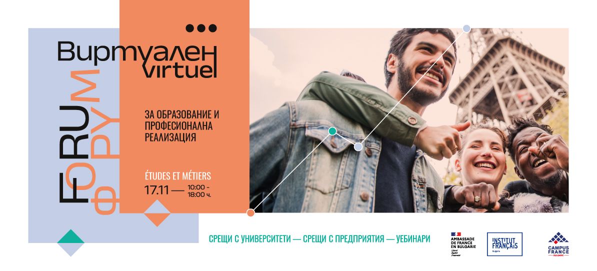 L’Institut français de Bulgarie et l’Agence Campus France ont le plaisir de vous inviter le 17 novembre 2023 au « Forum virtuel des études et des métiers ».