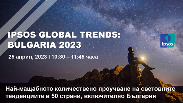 Имаме удоволствието да Ви поканим на уебинар във връзка с най-обширното количествено проучване на тенденции в света – Ipsos Global Trends, обхващащо 50 страни, включително България.