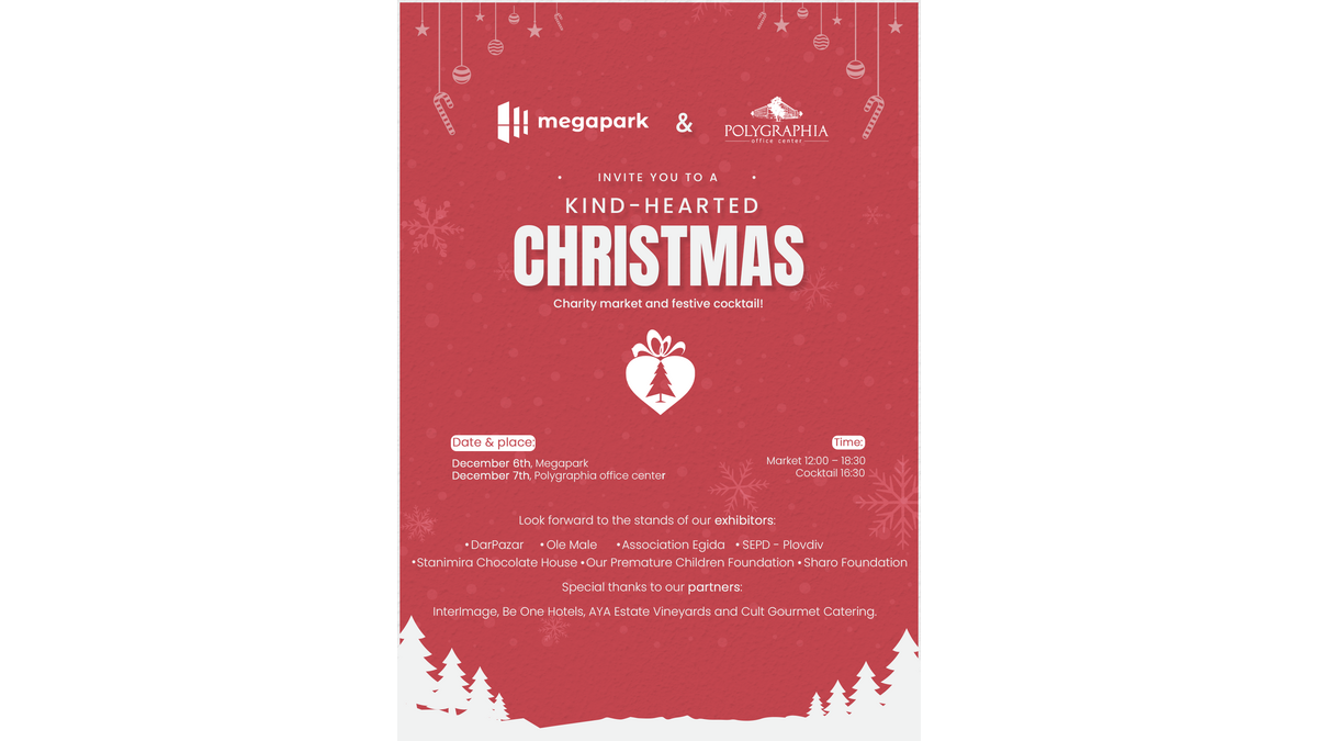 The Lion’s Head team has the pleasure to invite you to the Christmas Charity Markets “Kind-hearted Christmas” organized in the buildings they manage - on December 6th at Megapark and on December 7th at Polygraphia Office Center.