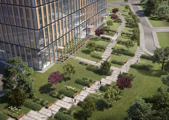 Park Lane Office Center has adjacent green areas for relaxation. The project provides bicycle stands as well as showers and changing rooms for cyclists. The building will have 400 parking spaces on 2 underground levels. The parking shall be equipped with charging stations for electric vehicles.