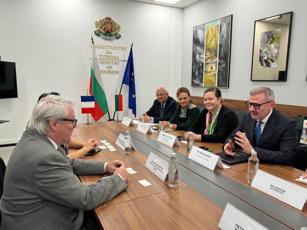 Le Ministre du Tourisme Evtim Miloshev, l'Ambassadeur de France en Bulgarie, S. E. М. Joël Meyer et Vessela Todorova-Mosettig, Directrice de la CCI France Bulgarie ont tenu une réunion sur les possibilités de promouvoir la Bulgarie auprès des citoyens français.