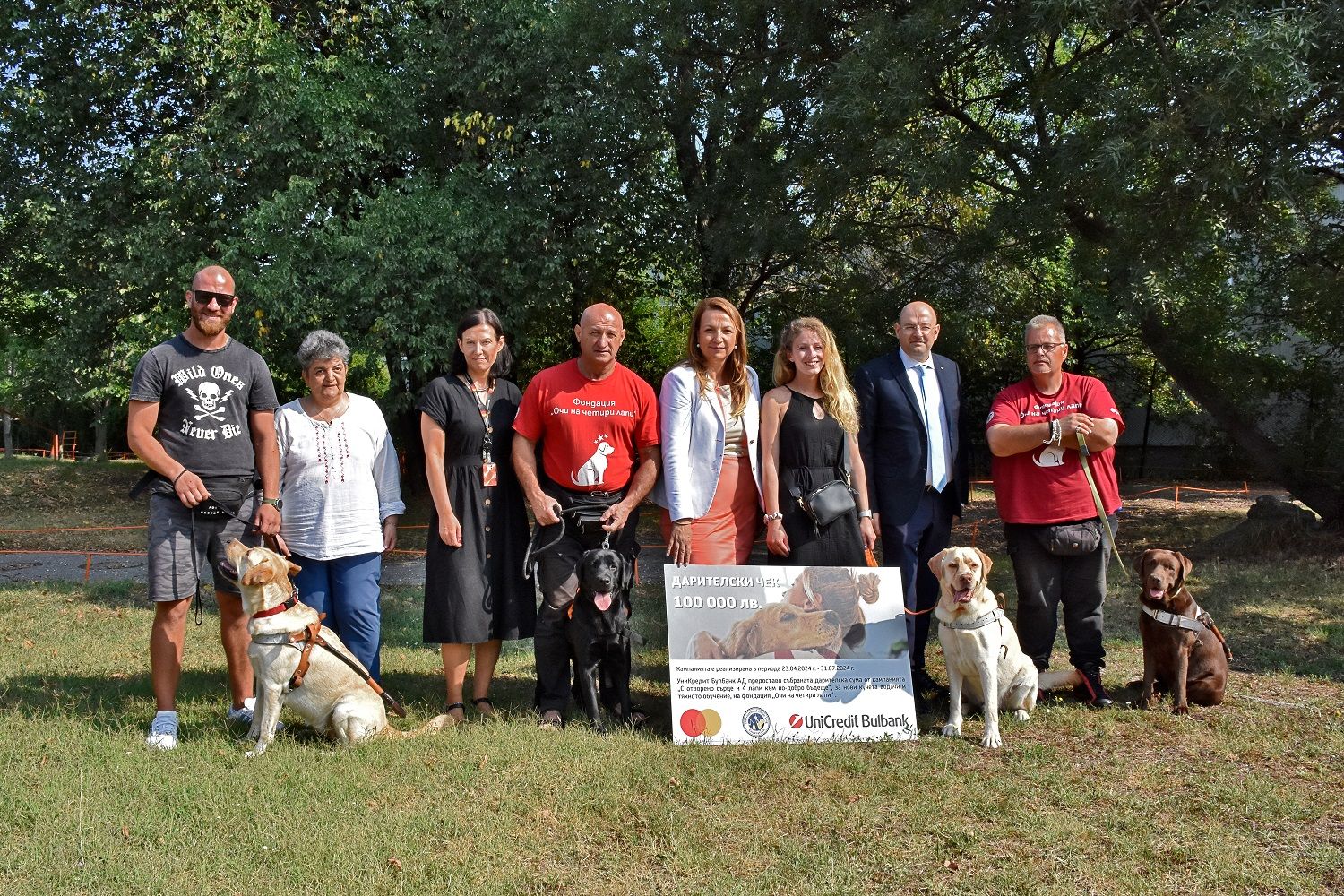 „Нашата мисия е да създаваме възможности за растеж и да създаваме приобщаваща среда. В лицето на „Очи на четири лапи“ видяхме партньор, който споделя нашите ценности и се радваме да подкрепим техния устрем в това да осигуряват пълноценен живот на хората с нарушено зрение“, каза Цветанка Минчева, главен изпълнителен директор на УниКредит Булбанк при връчване на чека.
