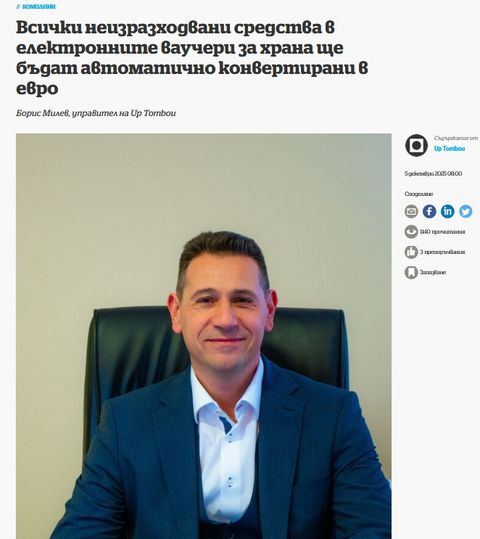 Veuillez retrouver ci-après un entretien de Boris Milev, dirigeant de Up Tombou, concernant les chèques-repas électroniques apres l'adoption de l'euro en Bulgarie:
