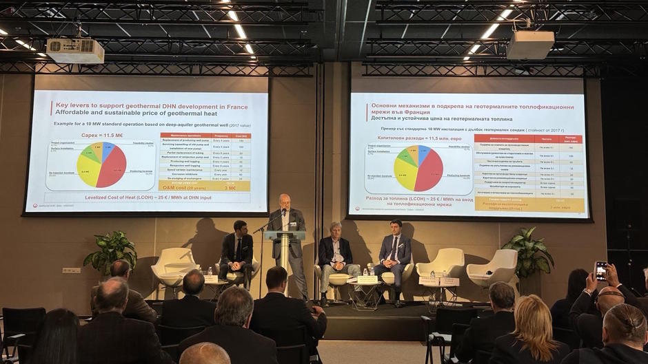 The goal of the conference, organized by the Bulgarian Energy and Mining Forum under the auspices of Sofia's Mayor, is to provoke discussion and focus public attention on the potential of geothermal energy for diversification of the production of thermal and electric energy. The interest in the topic is constantly growing, on the one hand due to the urgent need of decarbonization of the energy production and on the other – due to the planned measures at a municipal level for reducing the share of fossil fuels in the energy balance of the municipalities. The introduction of this new energy resource is also linked to another sore subject for the big cities – combatting air pollution. Up-to-date information about realized projects for heating and cooling using geothermal energy and projects of leading technological companies in that area were presented at the forum.