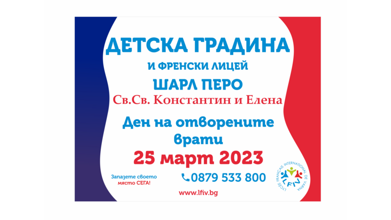 МЕЖДУНАРОДЕН ФРЕНСКИ ЛИЦЕЙ ВАРНА - ШАРЛ ПЕРО кани родителите на деца във възраст за детска градина да се запознаем на 25.03.2023 г. (събота). Елате,…