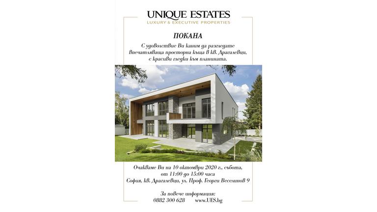 Нашият член Unique Estates Ви кани на open-house на един прекрасен имот в кв. Драгалевци на 10 октомври 2020 г. Линк към видеото и събитието във…