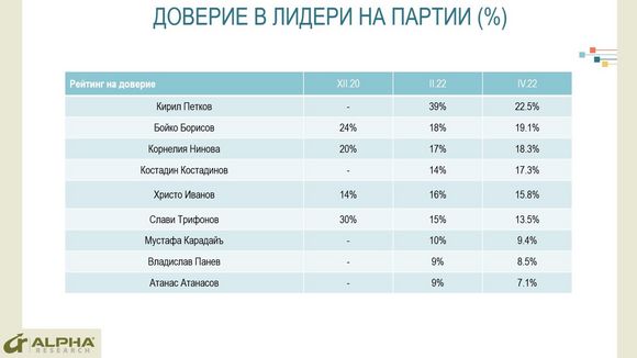 Според последното проучване от м. април на Алфа Рисърч се наблюдава поляризация в обществените нагласи на българите и динамика в отношението им към ключови политически играчи.