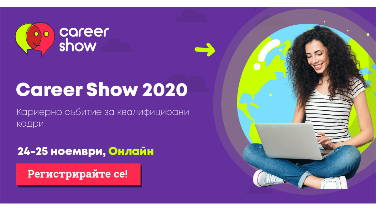 Водещото кариерно експо за квалифицирани кадри Career Show 2020 ще се проведе изцяло онлайн. В два дни - на 24 и 25 ноември 150+ от най-добрите работодатели ще се срещнат с над 5000 кандидати. Въпреки трудната икономическа обстановка, водещото кариерно експо за квалифицирани кадри Career Show 2020 събира рекорден брой кандидати, търсещи работа и възможности за развитие.