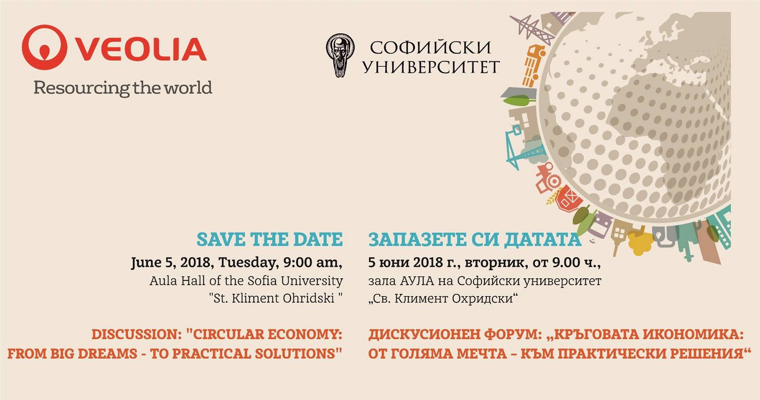 09.10 – 09.20 Откриване – от Регионалния директор на „Веолия“ за България – Франсоа Деберг, „Веолия“ е домакин на събитие, посветено на възобновяване на световните ресурси, с любезното гостоприемство и участие на СУ „Св. Климент Охридски“