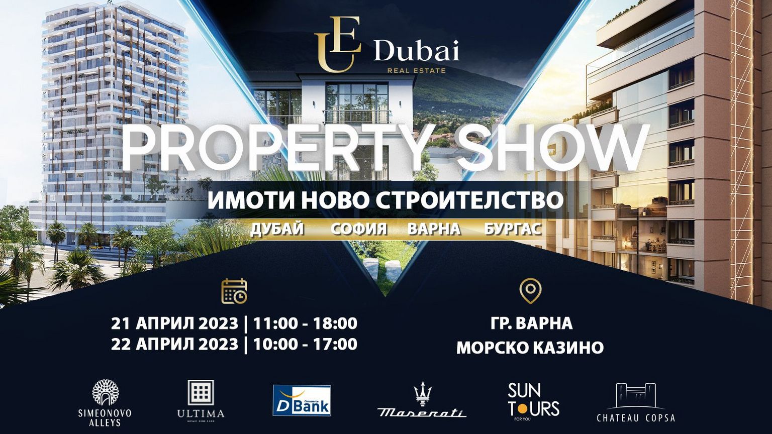 Our esteemed partners from New Estates, Address real estate, Imoteka, Ultima Homes, Simeonovo Alleys, SunTours and Chateau Copsa will also join the Property Show as participants and sponsors.