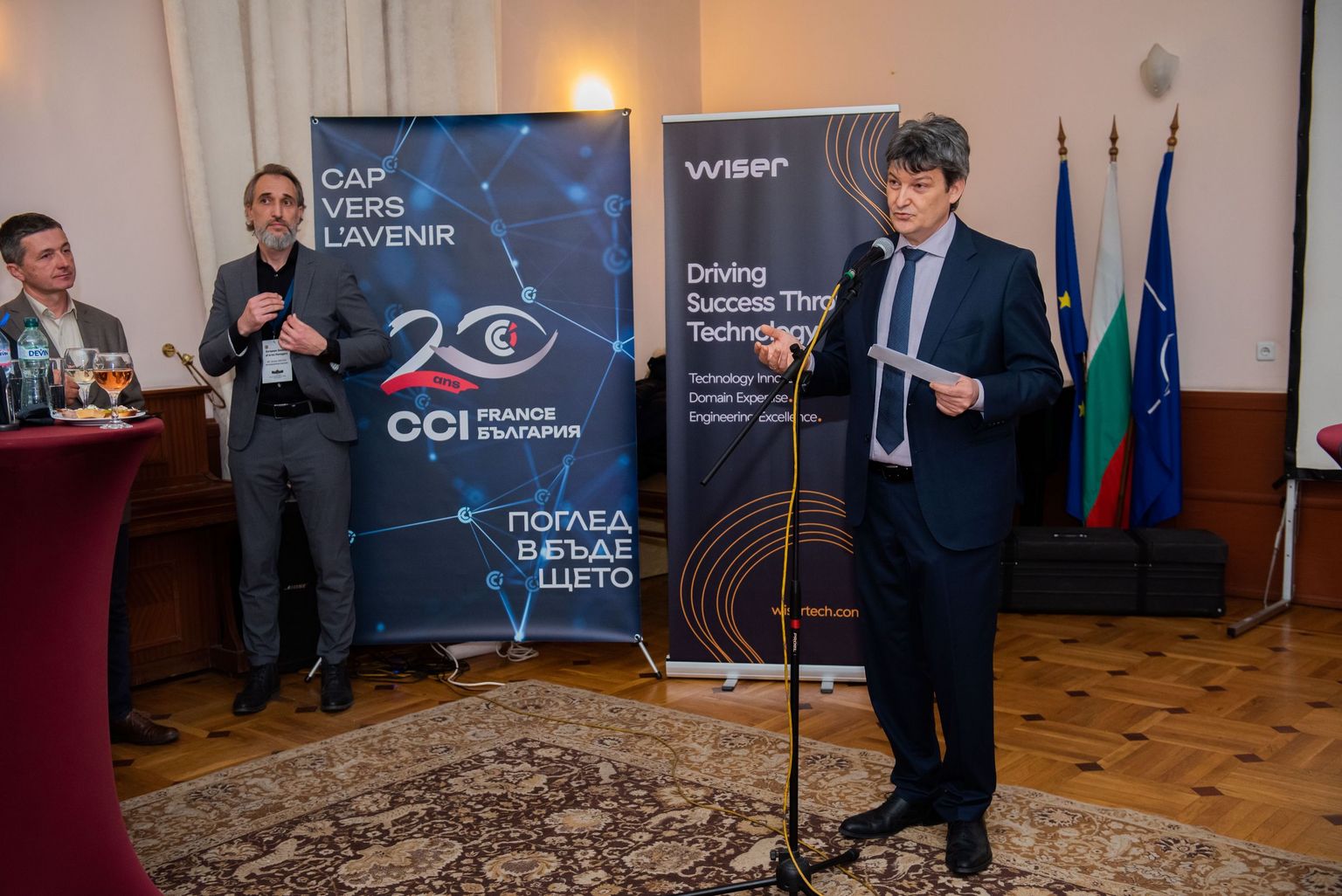 Делегатите от 25 европейски държави бяха приветствани от Димитри Атанасов, член на УС на ФБТИК, полковник Денислав Ушовски, началник дирекция „Политика по въоръженията‘‘ в българското Министерство на отбраната, и Димитър Димитров, технически директор на Wiser Technology.