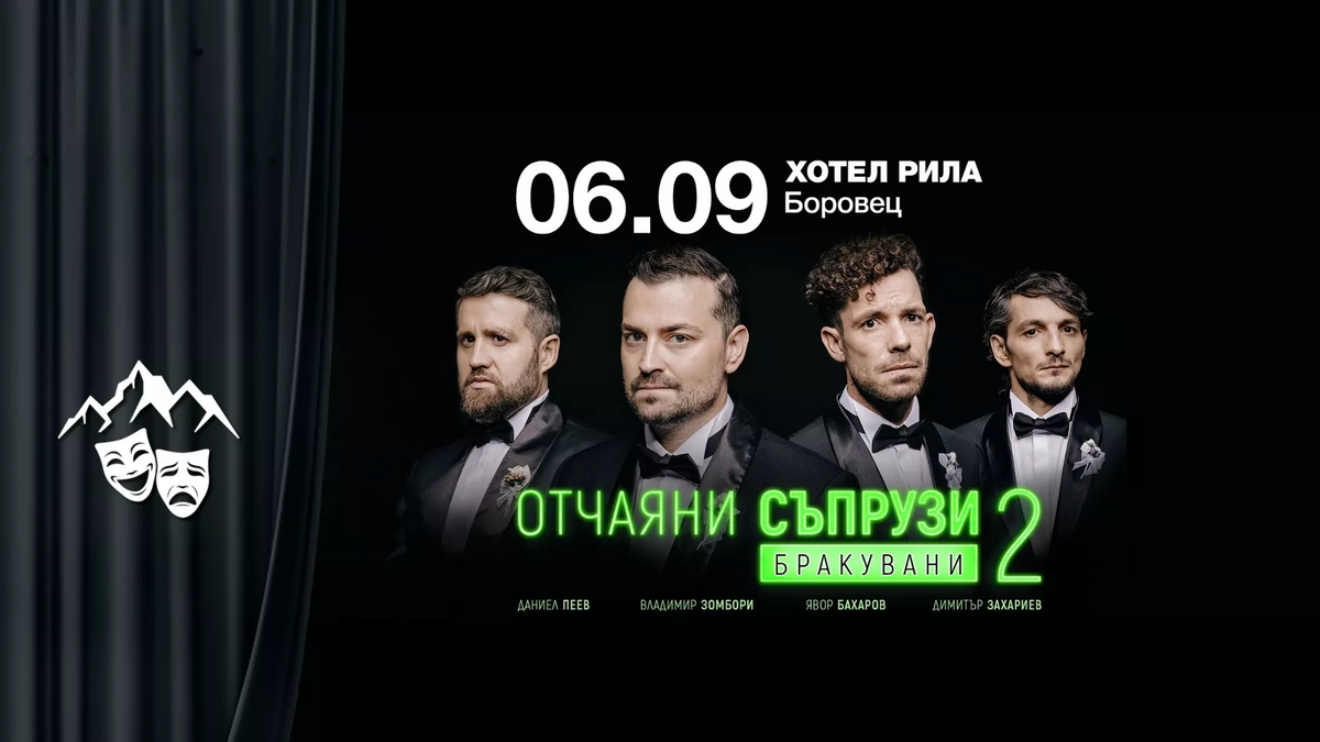 На 6 септември (събота) балната зала на хотел „Рила” ще оживее с третото представление от програмата „Театър в планината” – хитовата комедия „Отчаяни съпрузи 2: Бракувани”.