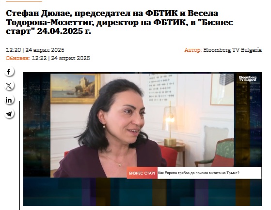 Interview of Vessela Mosettig and Stéphane Delahaye for Bloomberg TV: Economic current events
