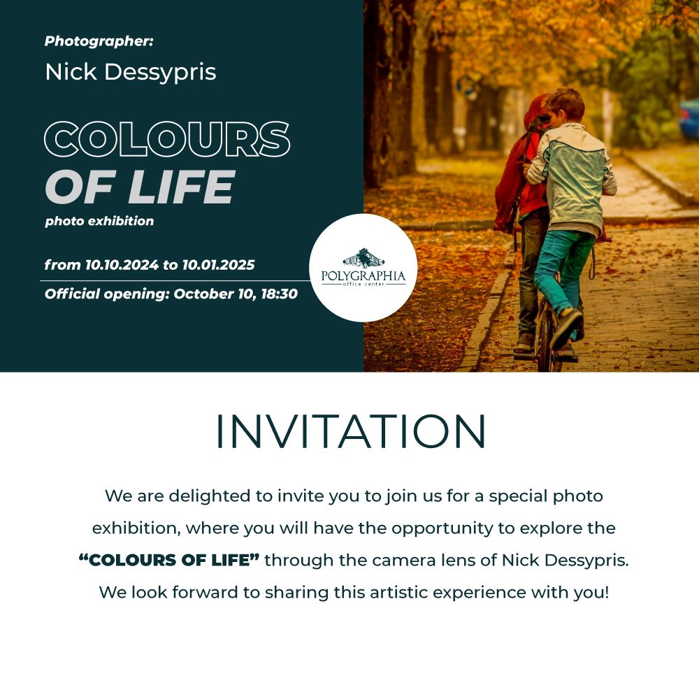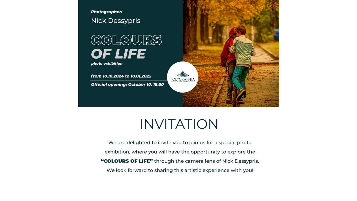 Lion's Head ви кани на коктейл по случай откриването на изложба на фотографии „Цветове на живота“ с автор Ник Десиприс