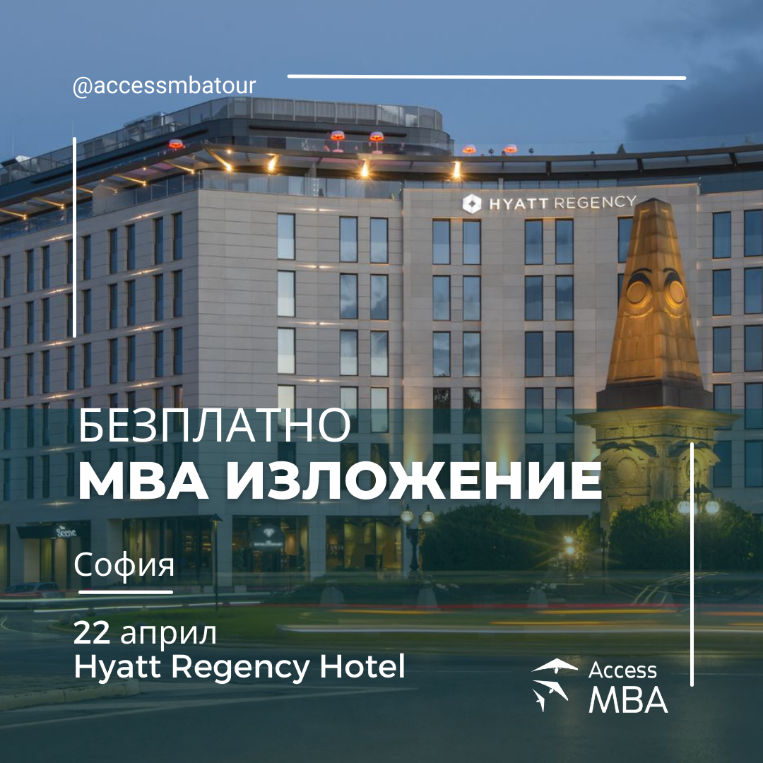 ? MBA изложение в София на 22 април ? Най-добрите бизнес университети идват в Hyatt Regency Hotel.
