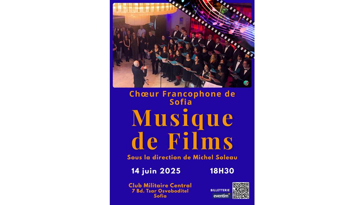 Заповядайте на концерт на Френско-българския хор в София на 14 юни, във Военния клуб в София, на тема Музика от филми. Билети можете да закупите от платформата Eventim.bg или на място в офиса на ФБТИК: