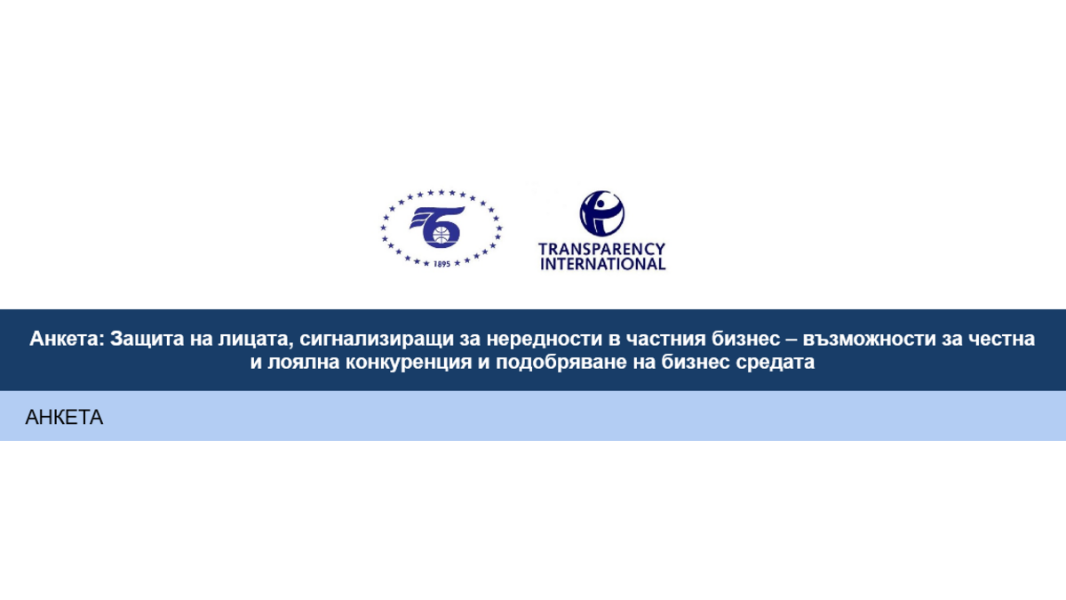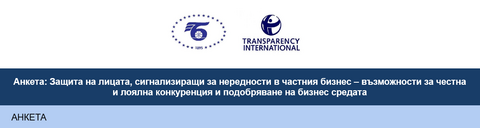 Българската търговско-промишлена палата съвместно с асоциация Прозрачност без граници провеждат проучване относно защитата на лицата, сигнализиращи за нередности в частния бизнес, какви са възможностите за честна и лоялна конкуренция и подобряване на бизнес средата.