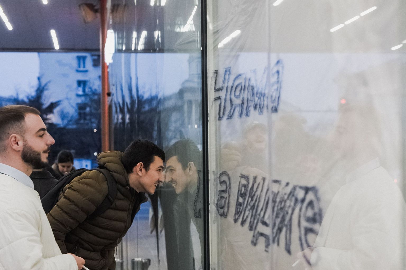 Десетки любители на съвременното изкуство, сред които известни меценати, галеристи и куратори бяха първите гости на изложбата. Актрисата и продуцент Деси Тенекеджиева също уважи младия автор, в качеството си на Председател на УС на Фондация „Стоян Камбарев“. Всъщност изложбата представлява една интерактивна акция, в която зрителите са също толкова важни, колкото и твореца. Всички гости надничаха през няколкото процепа на огромния прозрачен найлон, опаковал витрината на арт пространството, през който разглеждаха части от класическата експозиция.