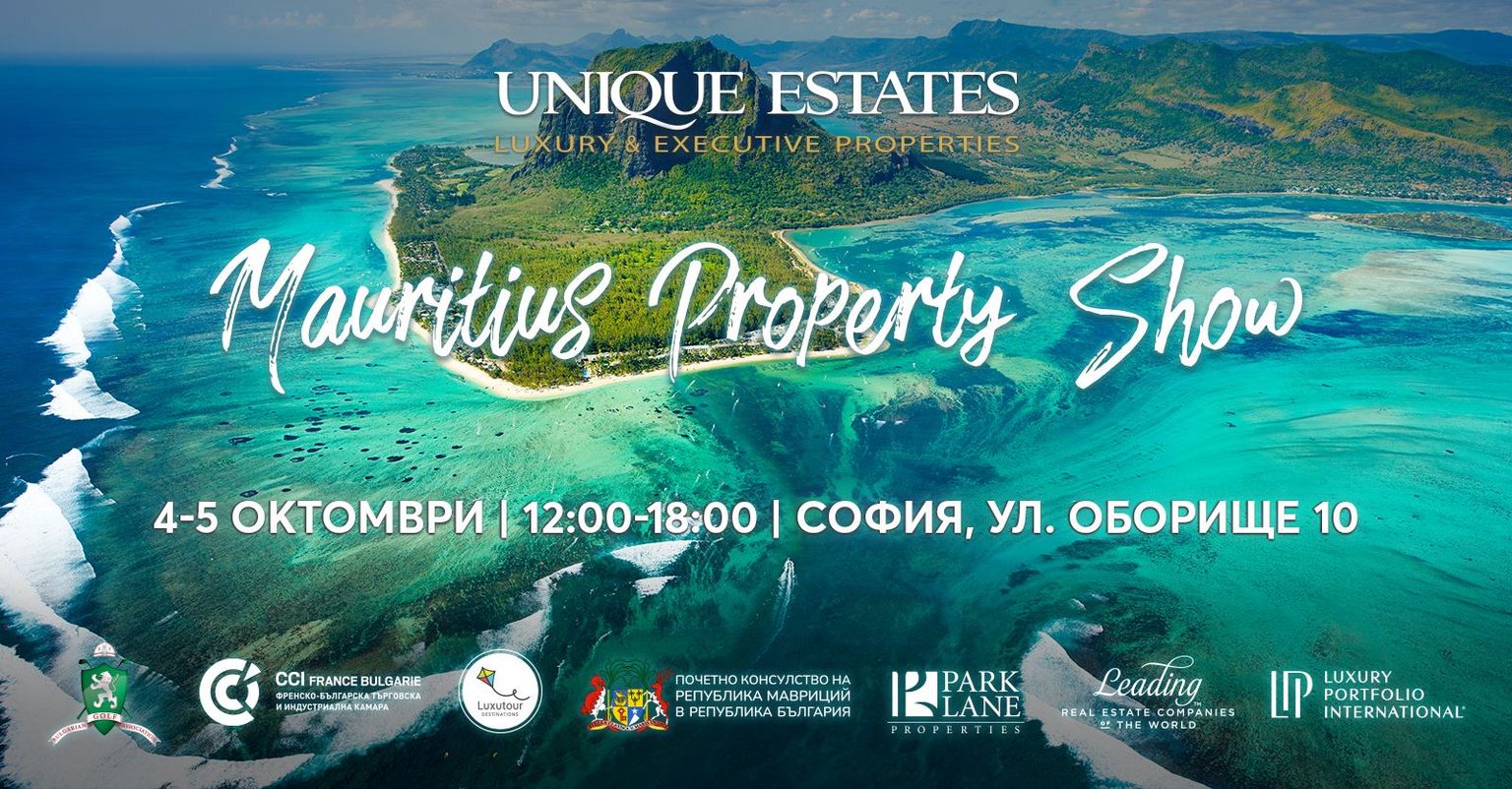 The Mauritius Property Show is held under the patronage of the Honorary Consulate of the Republic of Mauritius in Bulgaria. Special partners of the event include Luxutour, a travel agency for exotic holidays and excursions, the Bulgarian Golf Association, and the French-Bulgarian Chamber of Commerce and Industry.