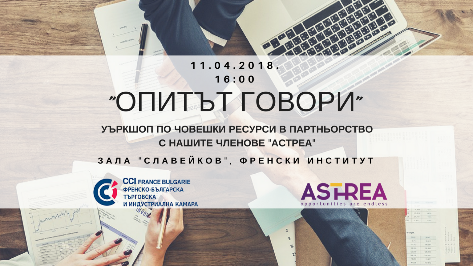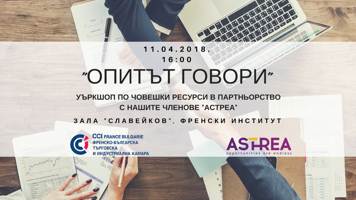 Имаме удоволствието да Ви поканим на уъркшоп по човешки ресурси, организиран съвместно с нашите членове Астреа, на 11 април от 16:00 часа във Френския институт.