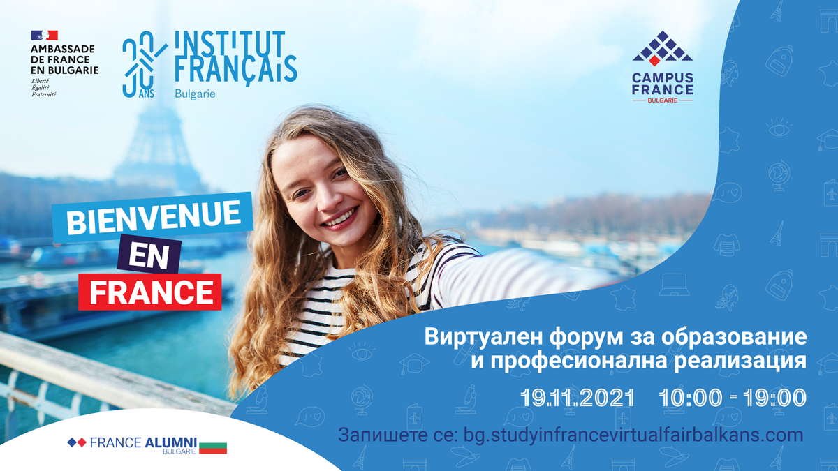 Френският институт в България и Агенция Campus France Париж имат удоволствието да Ви поканят да участвате на 19 ноември 2021 г. във « Виртуалния форум за образование и професионална реализация ».