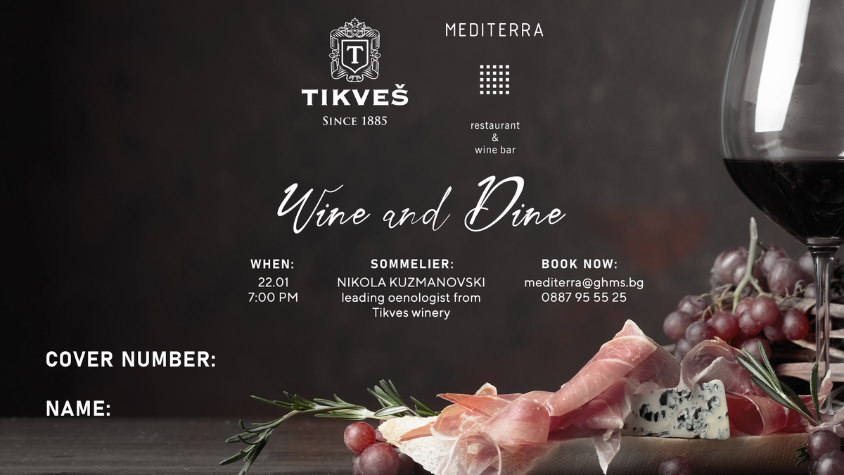 Mediterra Restaurant & Wine Bar invites you to an exclusive Wine & Dine experience organized in collaboration with the most awarded winery in North Macedonia, Tikveš Winery.