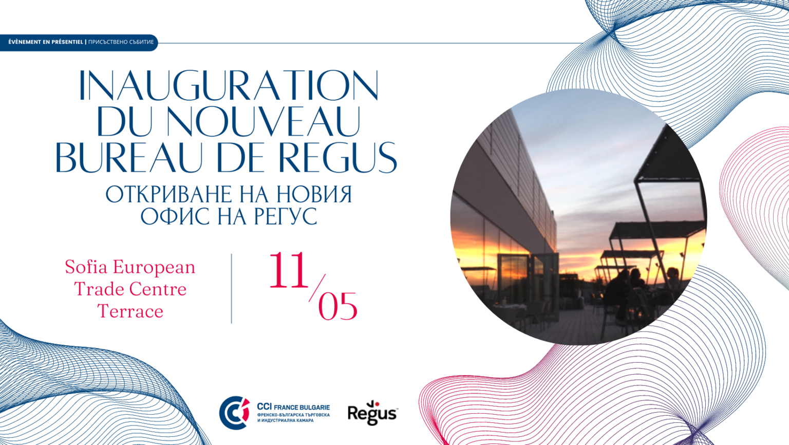 Nous avons le plaisir de vous inviter à un apéro organisé à l'occasion de la célébration de l'ouverture des nouveaux locaux de notre membre Regus à Sofia