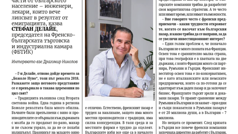 Entretien de Vessela Todorova-Mosettig, directrice de la CCIFB, au sujet du secteur vitivinicole en France, du Beaujolais nouveau, des investissements…